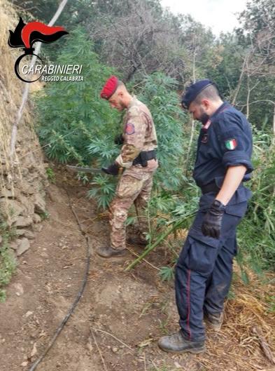 Una ricognizione aerea e un appostamento paziente hanno permesso ai Carabinieri della Stazione di Cardeto coadiuvati dai colleghi dello Squadrone Eliportato Cacciatori “Calabria” di scovare una coltivazione di marijuana nascosta tra la fitta vegetazione delle montagne reggine.