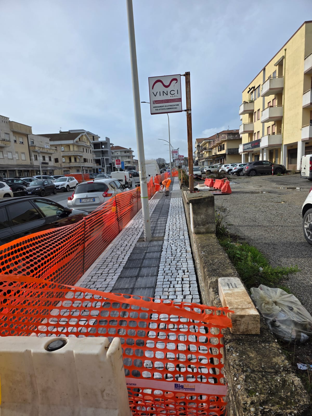 È quello che sta accadendo lungo viale Affaccio, a Vibo Valentia, zona trafficata, in crescita, in espansione… almeno sulla carta. Qui si sta lavorando – giustamente – al rifacimento dei marciapiedi: più larghi, con una pavimentazione nuova di zecca, e addirittura dotata del percorso tattile per non vedenti. Una piccola rivoluzione urbana, un segno di civiltà, che in Italia è quasi un avvenimento storico, tipo l’allineamento dei pianeti.. Un raro momento in cui si pensa: “Finalmente qualcosa che funziona!”
