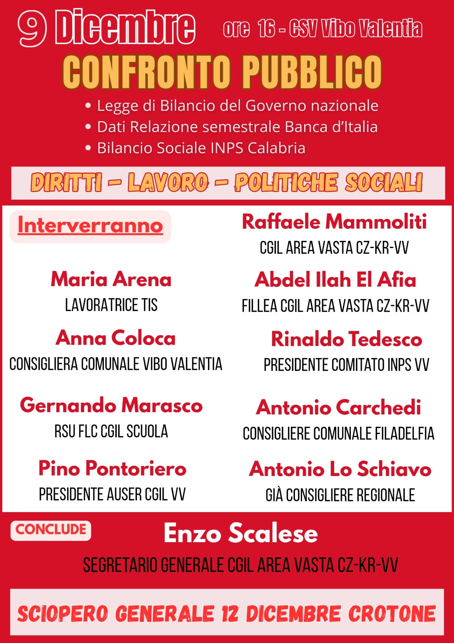 Si terrà martedì 9 dicembre alle ore 16, nella sala conferenze del Centro servizi al volontariato di Vibo Valentia, un confronto-dibattito pubblico a più voci sulla Legge di bilancio del governo nazionale, sui dati della relazione semestrale della Banca d’Italia e del Bilancio sociale dell’Inps.