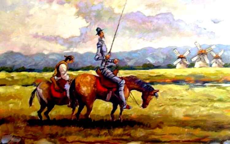 “La fortuna va guidando le cose nostre meglio di quel che potessimo desiderare, perché, vedi là, amico Sancho Panza, dove si scorgono trenta o pochi di più, smisurati giganti, con i quali penso di battagliare sì da ammazzarli tutti….poiché questa è buona guerra , ed è anche gran servigio reso a Dio sbarazzare da tanta cattiva semenza la faccia della terra”.