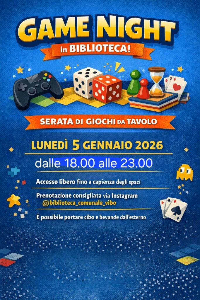 Dalle 18 alle 23 si potrà stare tutti assieme, giocare, divertirsie e trovare nuovi amici, l’ingresso è libero fino a esaurimento posti, ma sarebbe meglio prenotare su @biblioteca_comunale_vibo