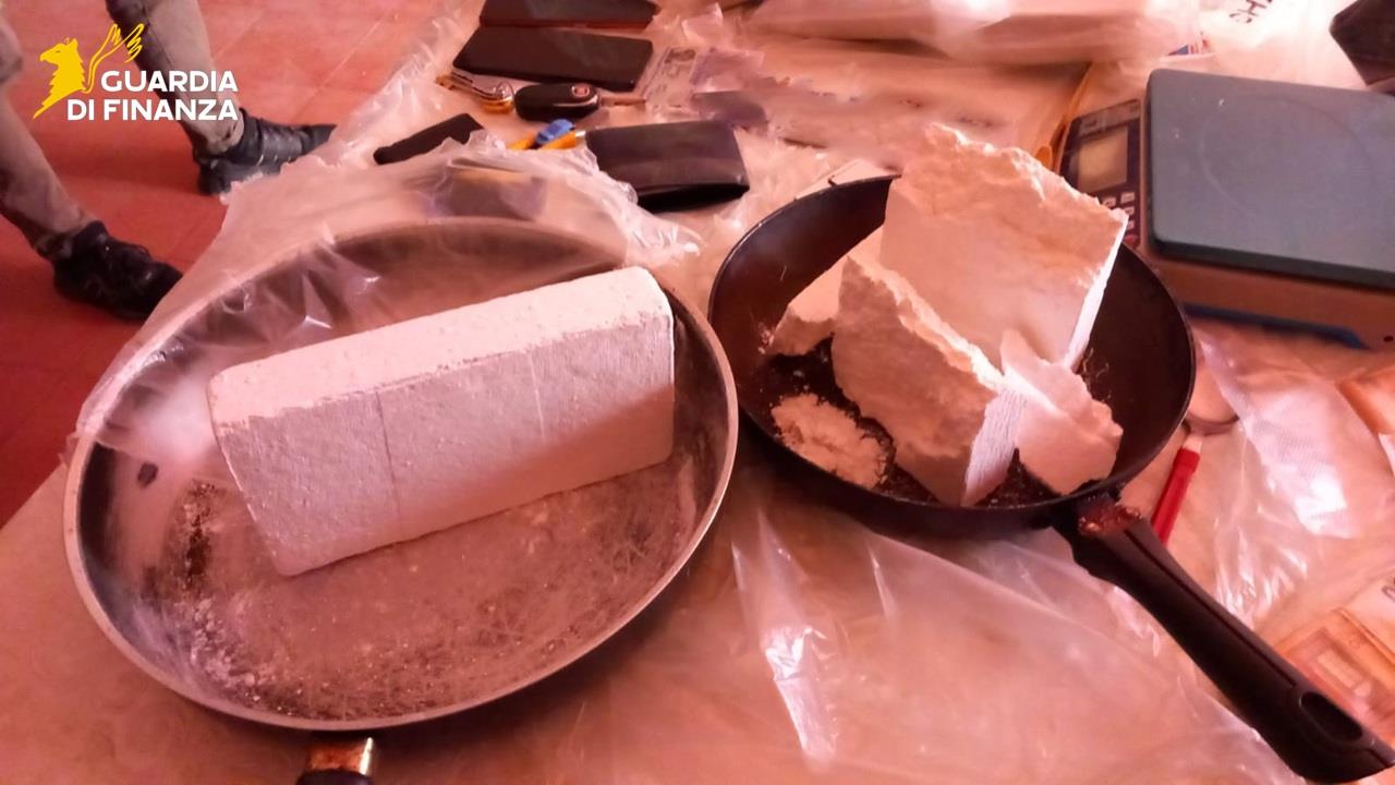 Al suo interno sono stati rinvenuti e sequestrati 5 panetti di cocaina del peso di circa 5 Kg e mezzo e 750 g di marijuana più attrezzatura varia per il taglio, la pesatura e il confezionamento, inoltre sono stati trovati oltre 100 mila euro in banconote accuratamente suddivise in più “mazzette” impacchettate in buste sottovuoto.