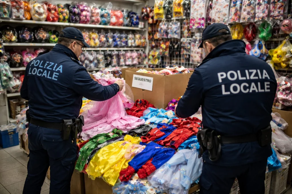 Durante un normale controllo periodico della Polizia Locale di Reggio Calabria volto a garantire la sicurezza dei prodotti sul mercato, con particolare attenzione agli articoli destinati ai bambini, gli agenti hanno scoperto e sequestrato circa cento costumi di Carnevale destinati ai bambini in un negozio del centro città, privi della certificazione CE obbligatoria per i giocattoli.
