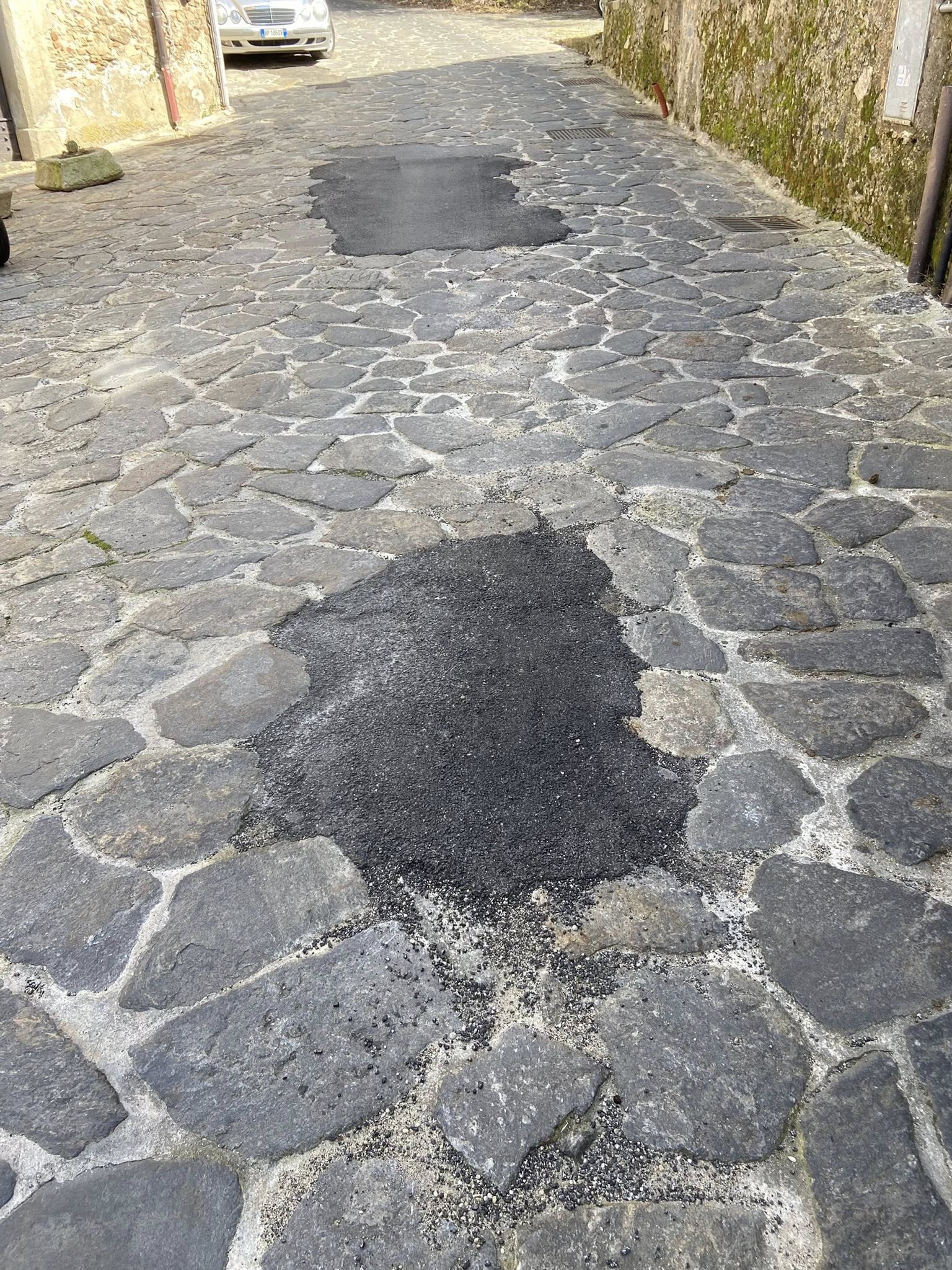 Quelle chiazze nere, gettate senza pudore tra le pietre che sanno di antico, non sono semplici rattoppi: sono amputazioni. Non sono manutenzione: sono resa. L’asfalto che cola sulle basole è l’emblema di una cultura amministrativa che sceglie la scorciatoia al posto della cura, l’improvvisazione al posto della competenza, il provvisorio al posto del progetto.