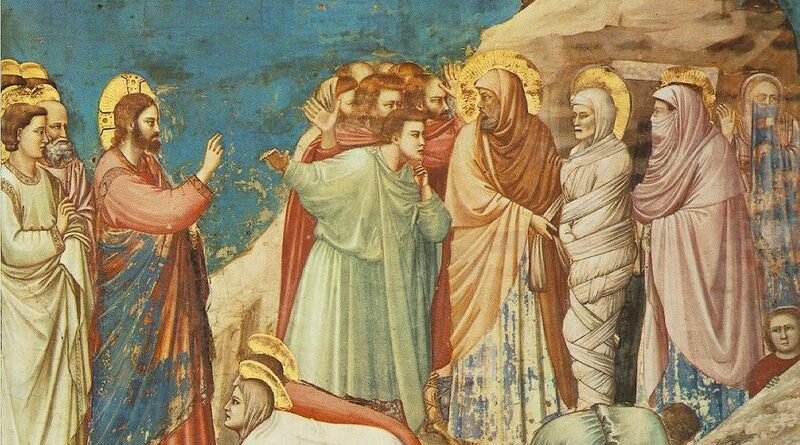 “In quel tempo un certo Lazzaro di Betania,il villaggio di Maria e di Marta sua sorella, era malato. Maria era quella che cosparse di profumo il Signore e gli asciugò i piedi con i suoi capelli; suo fratello Lazzaro era malato. Le sorelle mandarono dunque a dire a Gesù: «Signore, ecco, colui che tu ami è malato». All’udire questo, Gesù disse: «Questa malattia non porterà alla morte, ma è per la Gloria di Dio, affinché per mezzo di essa il Figlio di Dio venga glorificato». Gesù amava Marta e sua sorella e Lazzaro. Quando sentì ch’era malato, rimase per due giorni nel luogo dove si trovava. Poi disse ai discepoli: «Andiamo di nuovo in Giudea!». (Giovanni 11, 1-45).
