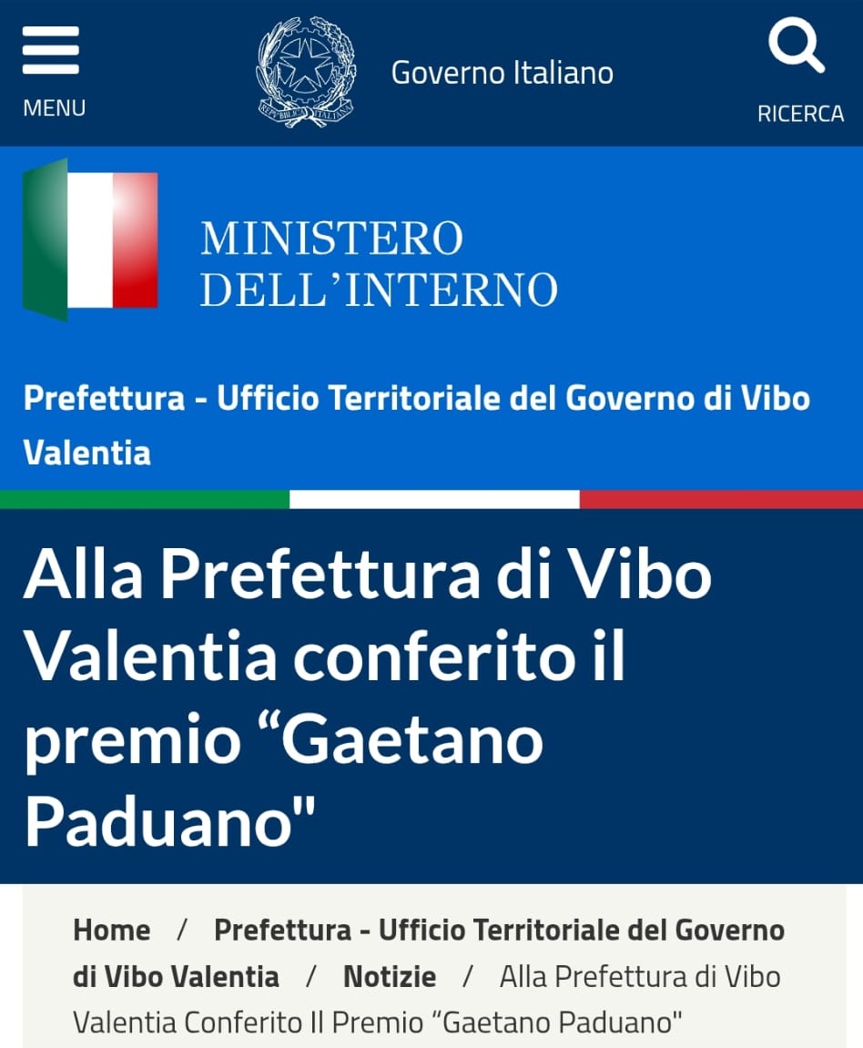 A cerimonia già conclusa e con il ricordo ancora vivo tra i partecipanti, è il riconoscimento istituzionale del Ministero dell’Interno a proiettare il Premio “Gaetano Paduano” su un piano di ancora maggiore autorevolezza. La pubblicazione ufficiale della notizia sul portale del Viminale non rappresenta infatti un semplice atto formale, ma un passaggio significativo che attribuisce ulteriore pregio all’iniziativa promossa dalla sezione U.I.R. di Vibo Valentia e realizzata alla presenza dei vertici nazionali dell’UIR guidata dal Presidente, Cav. Prof. Antonello De Oto.