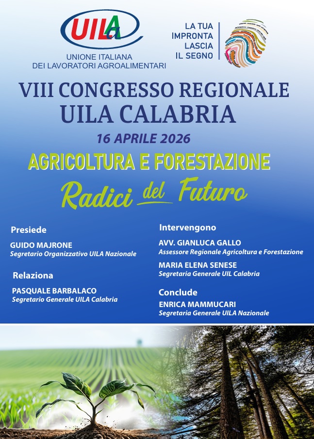 I lavori prenderanno il via alle ore 9:30 e vedranno la partecipazione del Segretario Generale della Uila Nazionale, Enrica Mammucari, e del Segretario Generale della Uila Calabria, Pasquale Barbalaco. Atteso anche l’intervento della Segretaria Regionale della Uil Calabria, Maria Elena Senese, a conferma della rilevanza dell’evento nel panorama sindacale e socio-economico regionale.