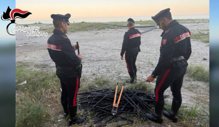 Due uomini sono stati sorpresi in flagranza dai Carabinieri della Sezione Radiomobile di Catanzaro, mentre stavano tagliando dei cavi elettrici sulla spiaggia di Roccelletta di Borgia, utilizzando una tronchese e un seghetto.